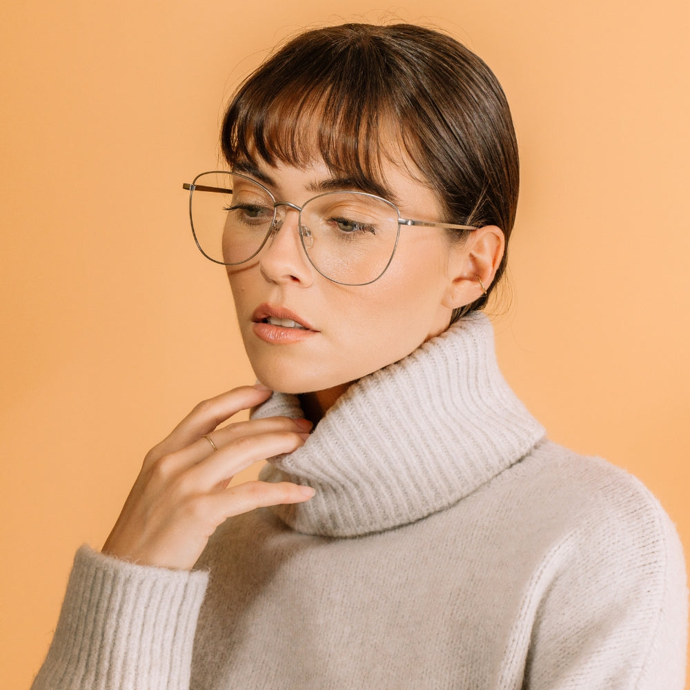 The Taylor features an inverted trapezoidal frame design that complements facial shapes, enhancing facial contours for a more three-dimensional look. Coupled with its silver metallic texture, these glasses give wearers a smart and sleek charm, infused with a sense of fashion.